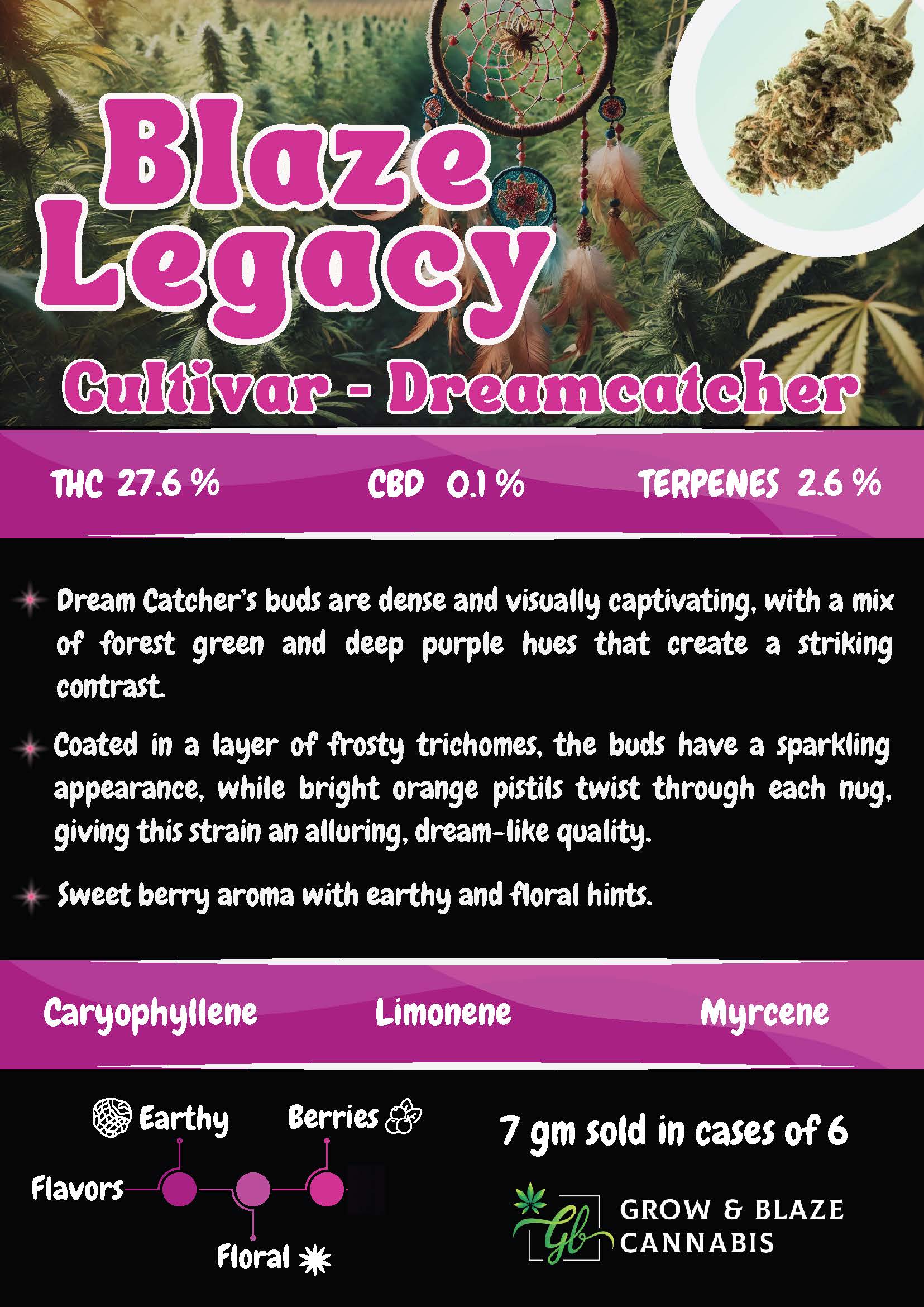 Grown in Kelowna BC, an Indica dominant flower born from the exclusive pairing of Blueberry/Black Domina x Blue Chronic. This strain tends to be sedating and heady, as the name might suggest, laying into the limbs with compounding physical weight. Dreamcatcher is functional and relaxing in small doses, but its sedative attributes increase with each consecutive hit. The strain’s multiple veins of “Blue” lineage give this flower a pleasant fruity aroma and taste.